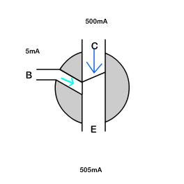 به چگونگی ارتباط بین جریان کلکلتور-امیتر و جریان بیس دقت کنید.